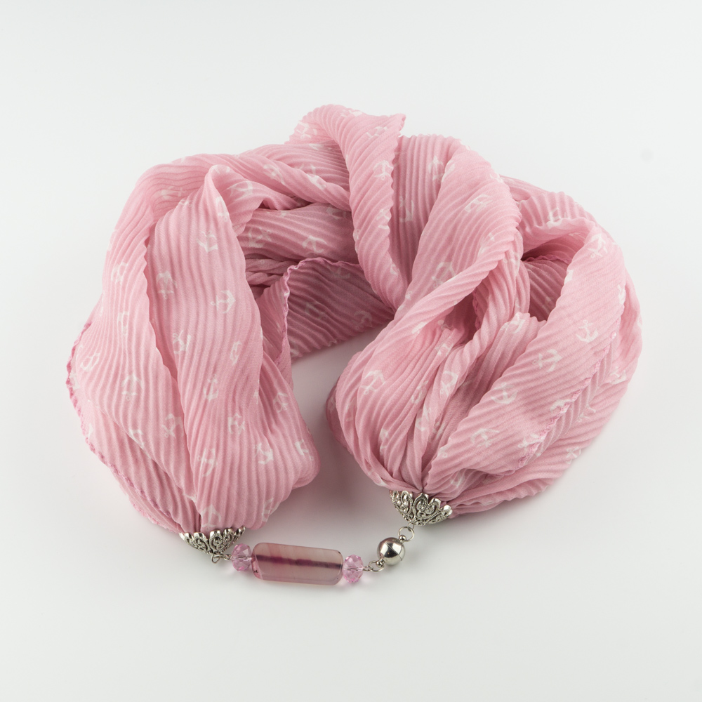 Sciarpina in misto seta / viscosa plissettata con minuteria in metallo e calamita centrale in agata e cristallo.