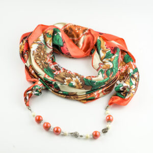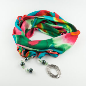 Sciarpina misto seta viscosa plissettata con minuteria in metallo e calamita centrale in agata e cristallo.