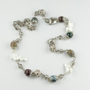 Collana Girocollo in ceramica alternata ad un cristallo con chiusura in acciaio.