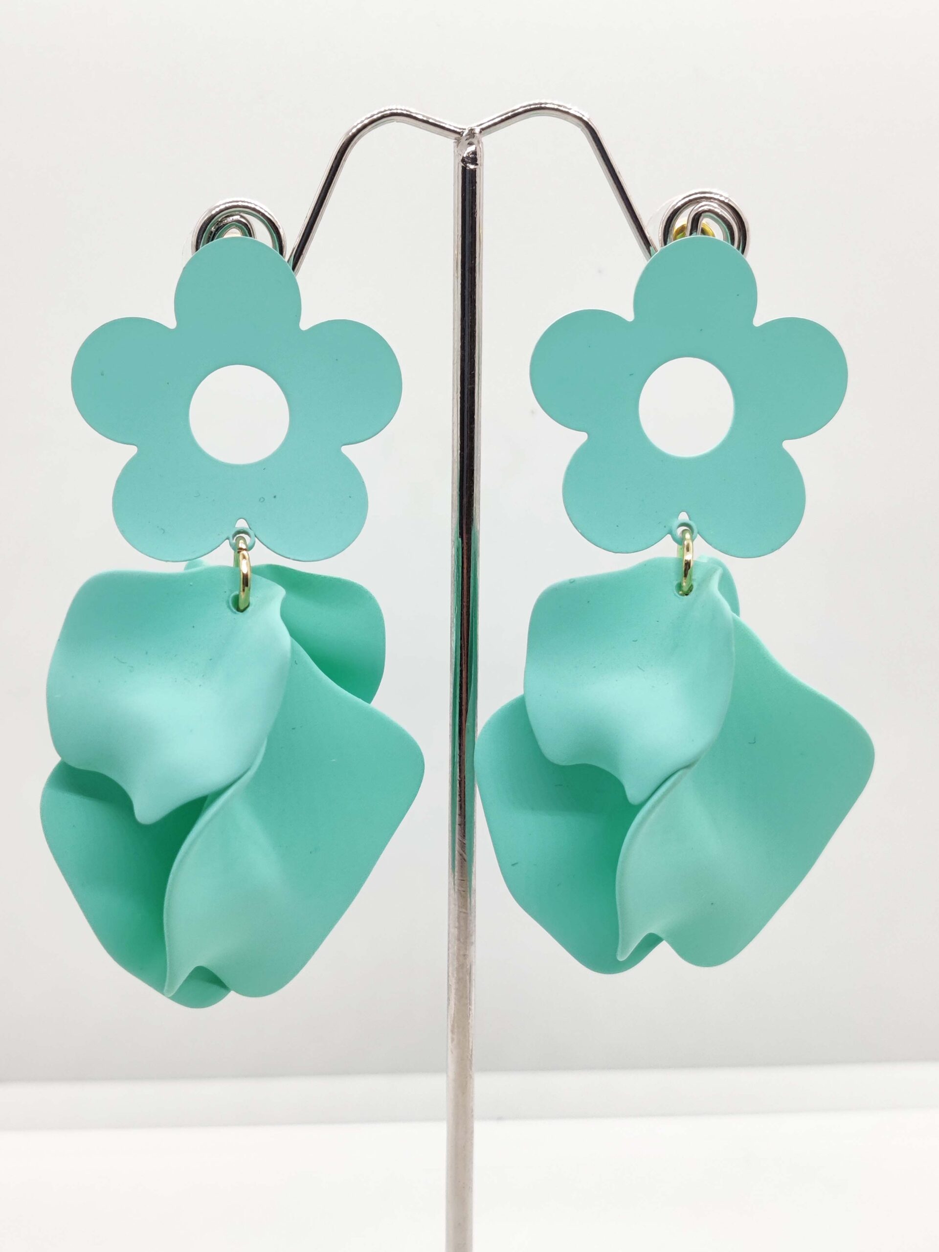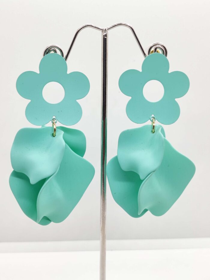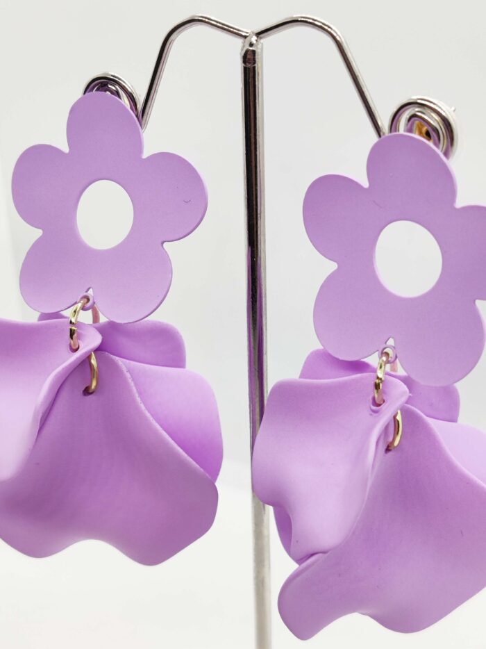 Orecchini con petali di fiori in plexiglass, estremamente leggeri.
